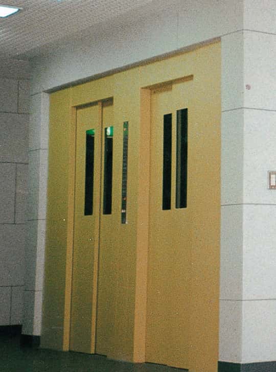 エレベータの扉に窓を設置し、防犯効果を高めた例